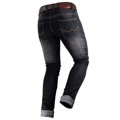 Großartig für Ihre täglichen Bedürfnisse auf dem Motorrad, das ist die Tejano Jeans von By City. Eine schöne Jeans mit gerader Passform, aus elastischem Baumwollgewebe mit einem Aramid-Futter innen. Es gibt Taschen für Hüftprotektoren und abnehmbare CE-geprüfte Flexishock Knieschützer sind enthalten. Die Tejano Jeans selbst ist auch CE-geprüft, CE prEN17092-3: 2018 Level AA. Genießen Sie Ihre Fahrt!