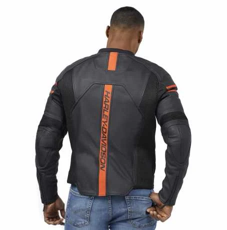 Ein unverzichtbares Accessoire für Enthusiasten. Diese Leder-Motorrad-Jacke ist mit CE-geprüfter Körperpanzerung (Ellbogen und Schultern), Rückenpanzertaschen, reflektierenden Details und einer Hosen-Verbindungsoption ausgestattet. Außerdem verfügt sie über einen schmaleren Brustbereich für eine aggressivere Fahrposition. Stylisch verarbeitet mit genau dem richtigen Punch an Farbe und Branding.