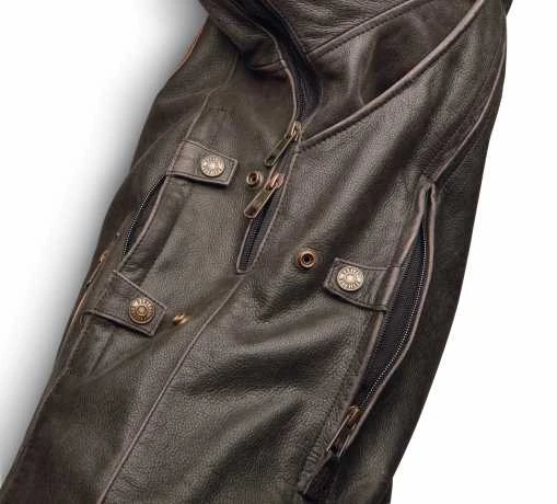 Die Harley-Davidson Lederjacke Trostel mit H-D®Triple Vent System steigert die Belüftung auf ein ganz neues Niveau von Coolness für unterwegs. Dank des patentierten Designs, das Kernöffnungen in einzigartiger Weise positioniert, können Sie die Luftströmung auf einen Nenner bringen.