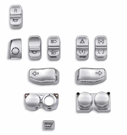 Diese Chrom-Schalterkappen-Kits heben eine der augenfälligsten Partien Ihres Bikes stilvoll hervor: die Schalter.