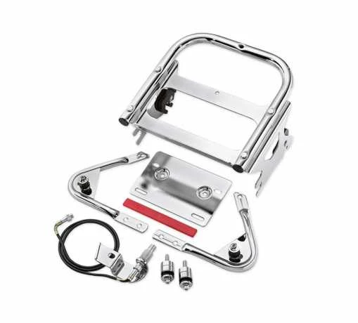 - Komplettes Kit inklusive Doppelsitzbank-Montagekit, abnehmbarem Tour-Pak Gepäckträger für Doppelsitzbank, verchromtem Nummernschildhalter, Reflektor und Teilen für die AM/FM-Antennenverlegung