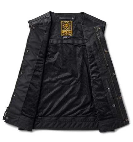 Klassische Bikerweste aus Leder – die RSD-Art. Die Lewis-Weste ist aus hochwertigem, handgefertigtem Büffelleder gefertigt und verfügt über einen strapazierfähigen Frontreißverschluss mit Sturmleiste und versteckten Druckknöpfen. Innen verfügt die Lewis über ein Mesh-Futter, einen unteren Reißverschluss zum Aufnähen von Patches, eine Brusttasche für Geräte und eine Tasche zum verdeckten Tragen. Erhältlich in einer Standardversion und in einer einzigartigen Version mit Blitzprägung.