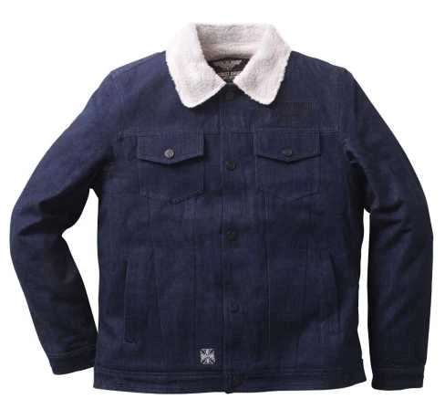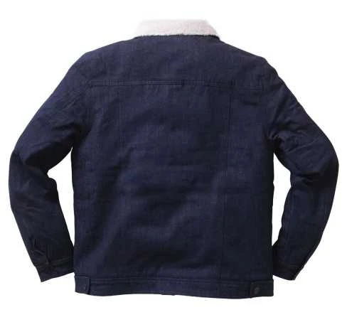 Diese blaue gefütterte Jeansjacke ist ein echter Klassiker. Die gefütterte Jacke hat westlich angehauchte Details wie Pattentaschen mit Druckknöpfen, seitliche Eingrifftaschen, Knopfleiste und ein warmes, kuscheliges Sherpa-Futter.